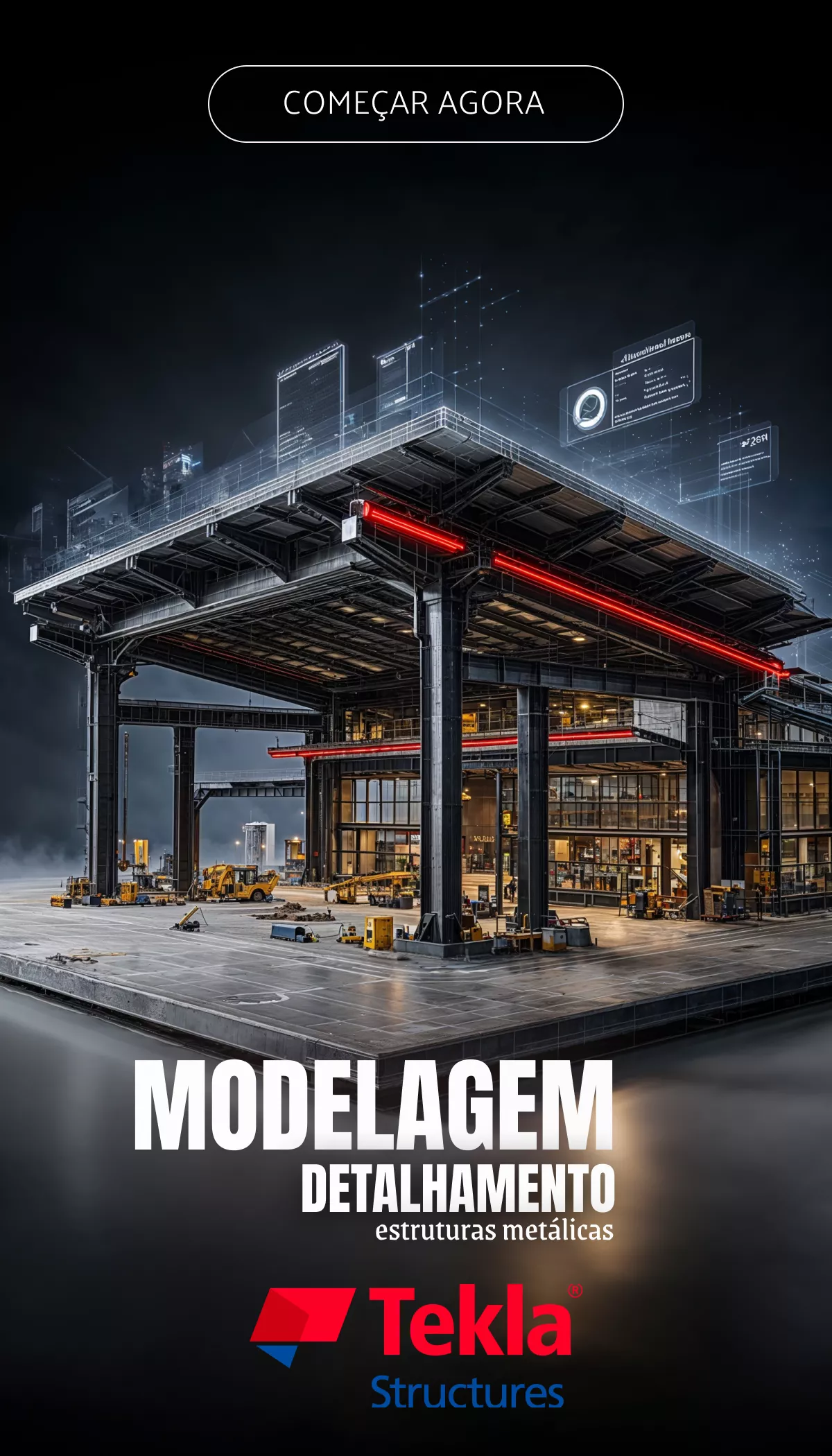 Domine o projeto completo de estruturas metálicas: cálculo, modelagem, detalhamento e memoriais. Cype3D - Tekla Structures - Robot - Solidworks e cálculo manual